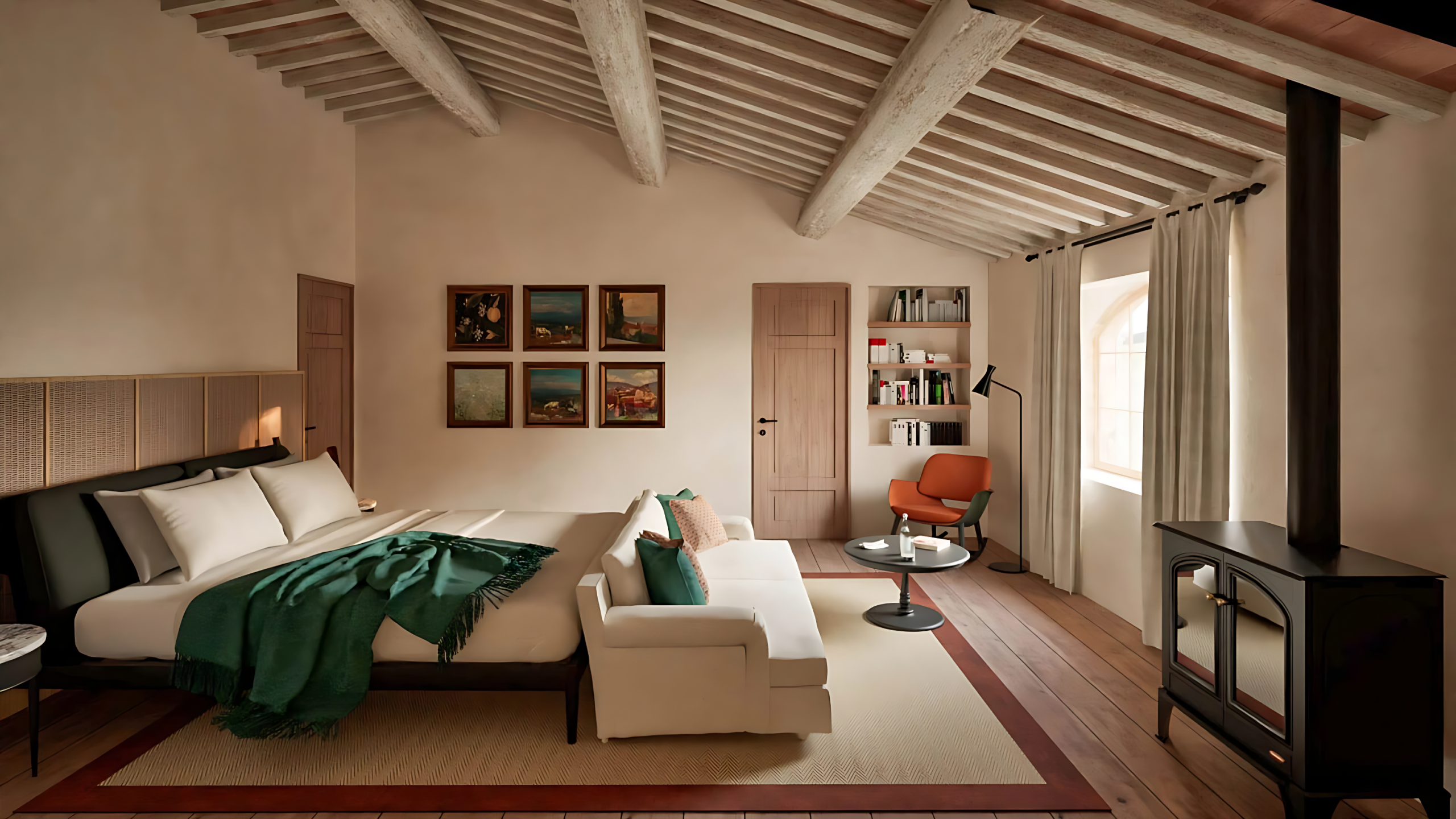 The design language of Agaporia is one of refined restraint, utilizing local stone, reclaimed timber, and lime-based plasters to create spaces that breathe in unison with the Tuscan hills. These are calibrated environments where every tactile element, from the organic linens to the handmade terracotta, facilitates deep, uninterrupted rest.